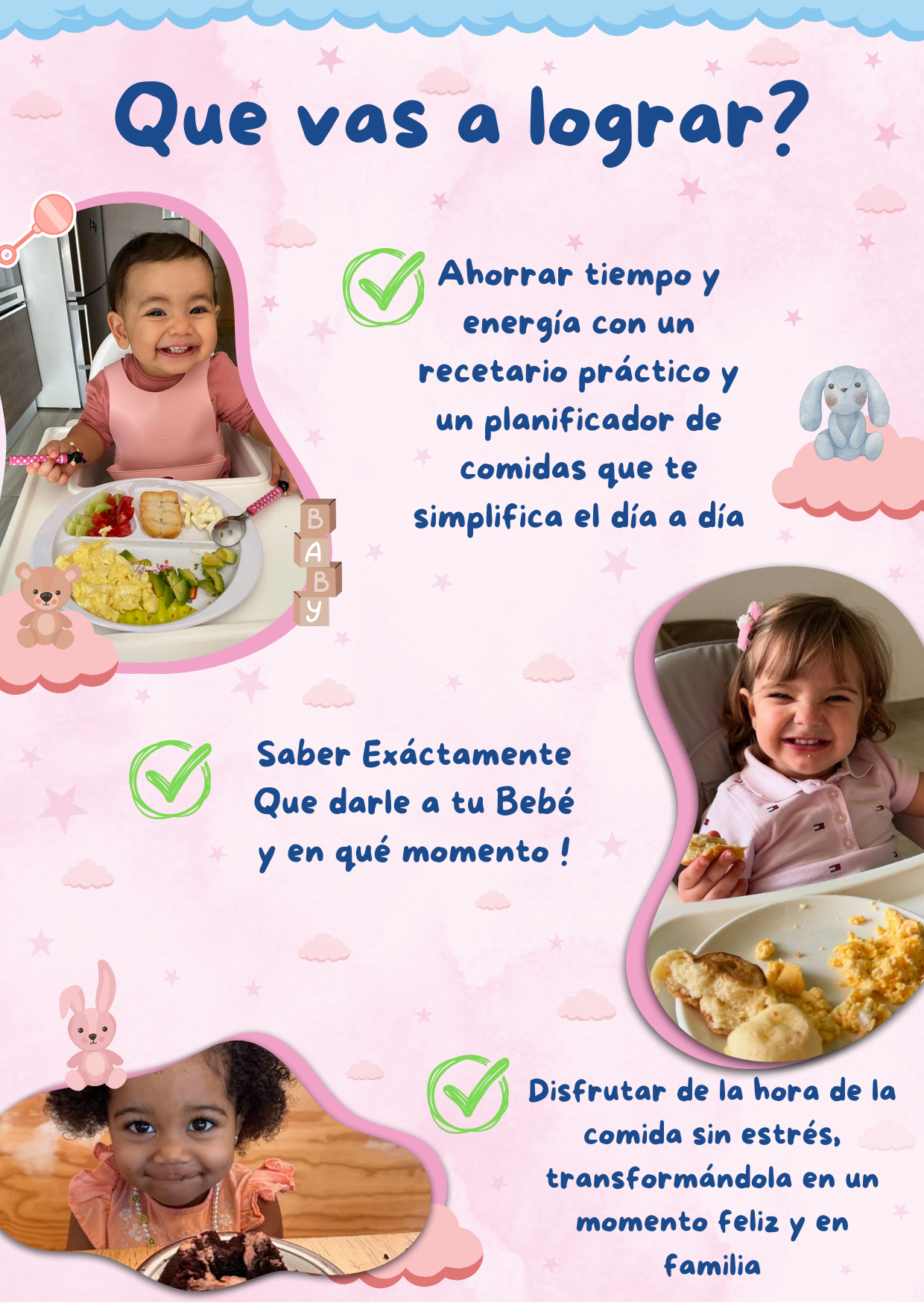 🍽️ ¡Por supuesto! El recetario está organizado para ofrecerte ideas variadas para todo el día: desayunos, almuerzos, cenas y snacks, para que tu bebé tenga siempre opciones nutritivas y deliciosas.